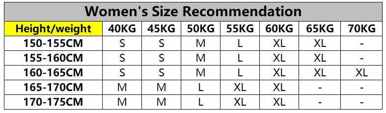 | Tabela de tamanhos femininos(Unidade: cm) | ||||